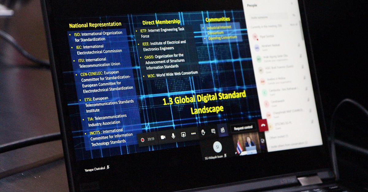 14 สิงหาคม 2563, อาคารดีป้า ลาดพร้าว – ดีป้า นำโดย น.ส.กษมา กองสมัคร ผู้ช่วยผู้อำนวยการใหญ่ด้านนโยบายและความมั่นคง เปิดบ้านในฐานะเจ้าภาพชวนประเทศเพื่อนบ้านอาเซียนเข้าร่วมแสดงความคิดเห็นในงาน “Workshop on Identifying Priority and Facilitating Alignment of Standards in the Digital Sectors across AMS” ผ่านระบบ Microsoft Team ซึ่งดีป้าได้รับทุน ASEAN ICT Fund จากที่ประชุมอาเซียนเพื่อทำการศึกษา